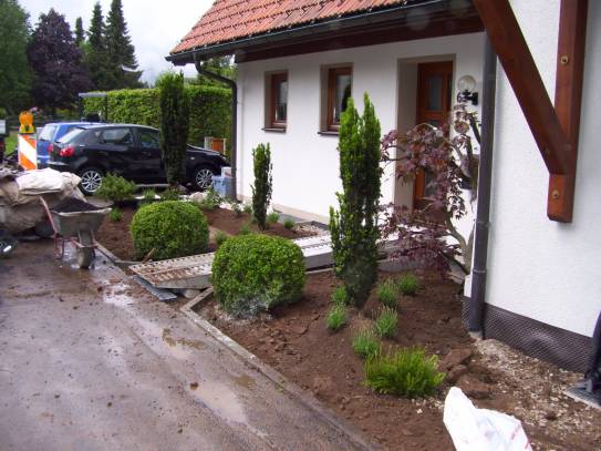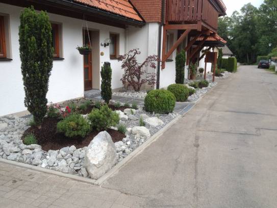 Die Betreiber dieser Ferienpension im Hochschwarzwald wollten eine ansprechendere Umgestaltung ihrer Anlage, welche bisher auf großen Kiesflächen aufbaute, hin zu einem repräsentativen Eingangsbereich.