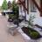 Die Erschließung des zu sanierenden Maggia-Granitbelages im privaten Eingangsbereich wurde bewusst unauffällig und abgegrenzt gegenüber dem breiteren Gästeeingang gehalten. Da der Pflegeaufwand bei Aufwertung der Grünflächen nachhaltig gering bleiben sollte, entschieden wir uns für den Aufbau eines Steinbeetes, welches durch offene Pflanzbereiche (die bepflanzten „Berghänge“) gekrönt wird.