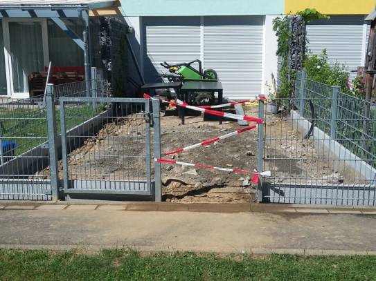 Reihenhaussiedlung; abschüssiges, daher ungenutztes Gelände, vom Bauträger erstellte Betonterrasse-bereits im 2. Jahr verwildert…das fanden wir von althaus-garten beim ersten Ortstermin vor.