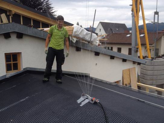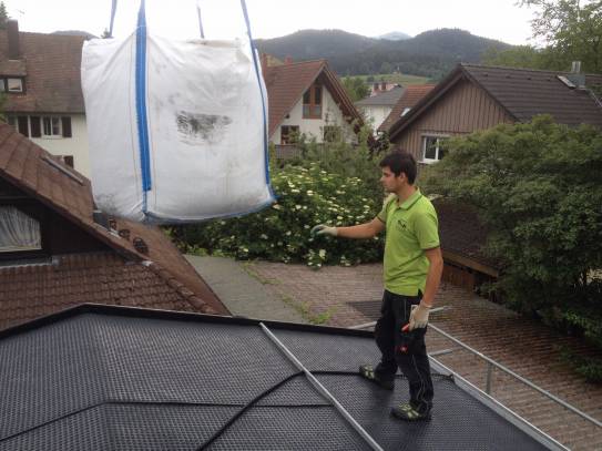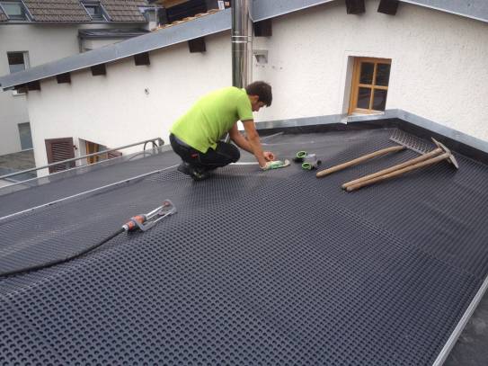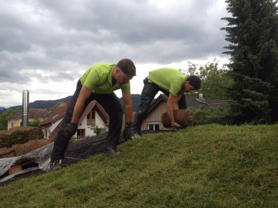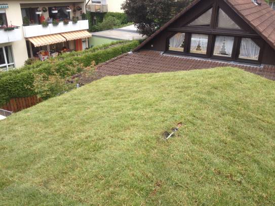 alle Tage verlegen wir Rollrasen auf dem Schrägdach - nur dank eines
