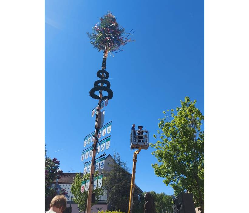 Gestern haben wir pünktlich vor Mai-Beginn gemeinsam mit anderen Handwerkern aus der Region im Kirchzartner Innerort den traditionellen Maibaum aufgestellt.