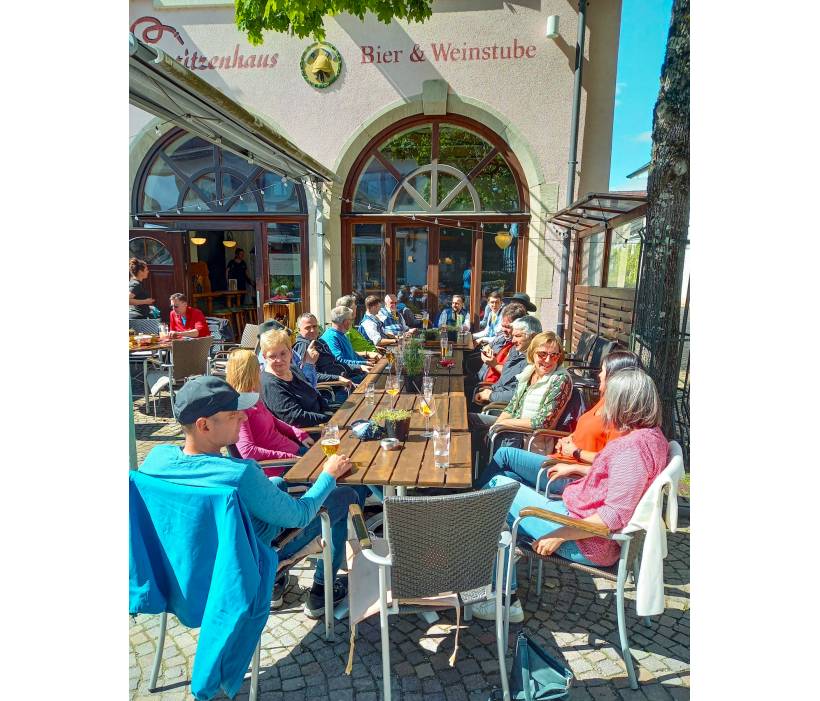 Klar, dass auch das gemütliche Zusammensitzen im Anschluss nicht fehlen darf- dank bestelltem Kaiserwetter wieder an langer Tafel unter freiem Himmel.
