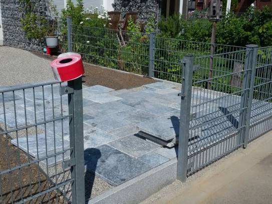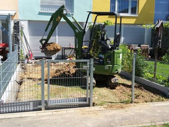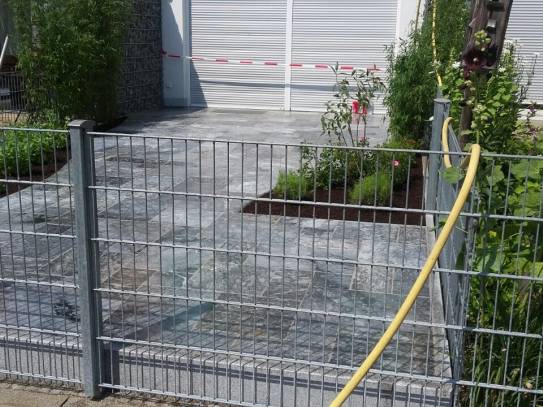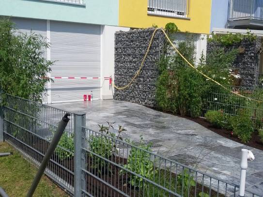 Reihenhaussiedlung; abschüssiges, daher ungenutztes Gelände, vom Bauträger erstellte Betonterrasse-bereits im 2. Jahr verwildert…das fanden wir von althaus-garten beim ersten Ortstermin vor.